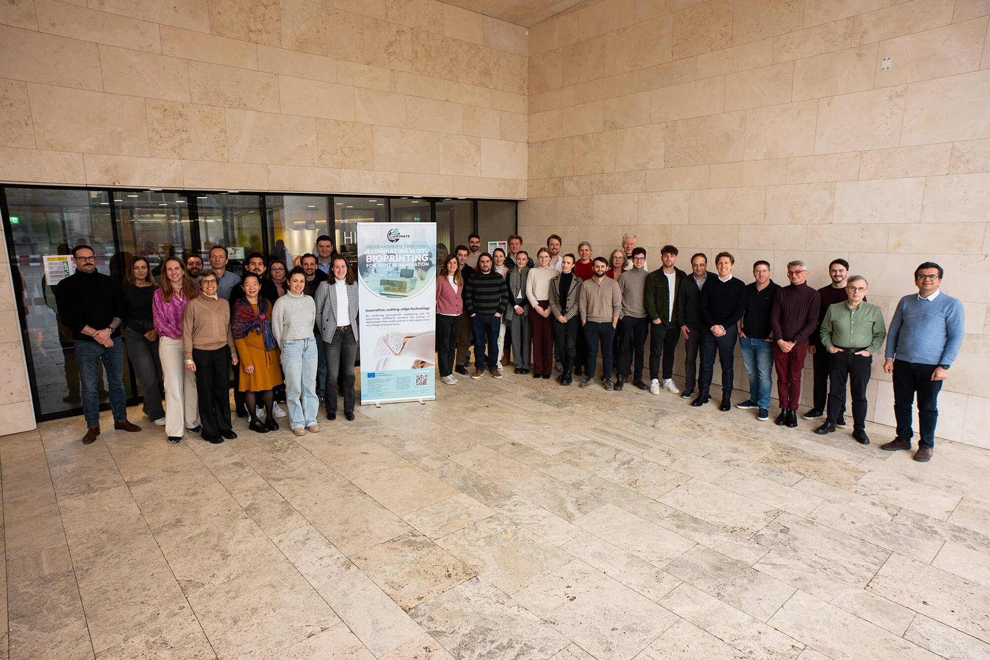 The LUMINATE gallery captures key moments from the project’s journey, highlighting the people and partnerships that drive its success. Through meetings, workshops, and public events across Europe, the consortium brings together leading experts in regenerative medicine, biomaterials, and bioprinting. These photos reflect the collaborative spirit, scientific exchange, and shared commitment to advancing innovative solutions for osteochondral regeneration.